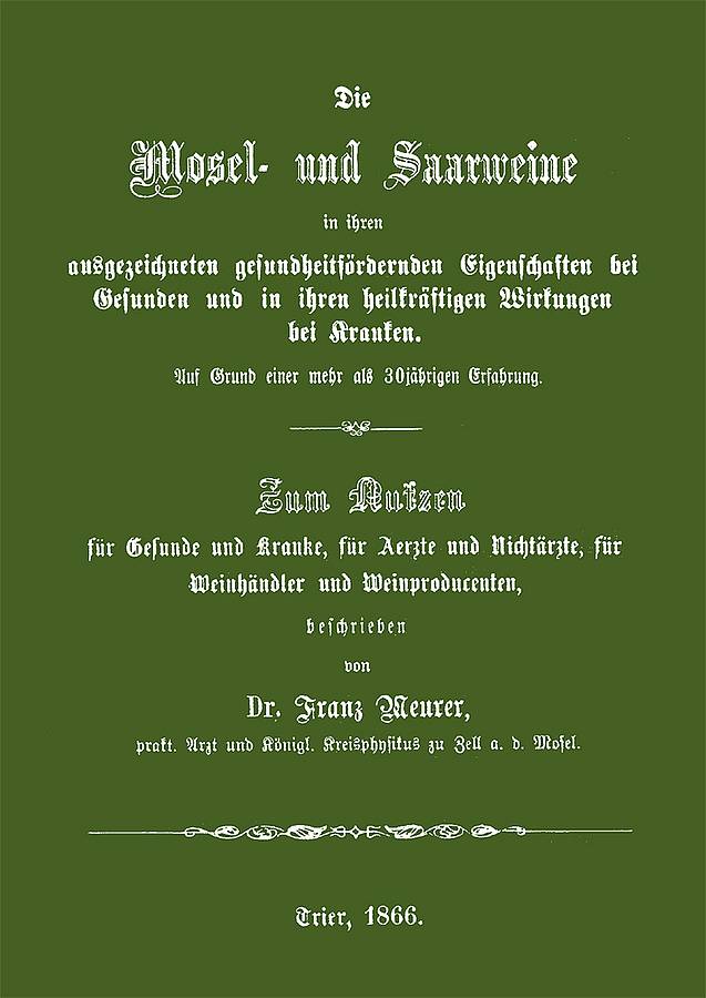 Eine gute Freundin machte mir dann die Notizen eines Arztes aus der Mitte des 19. Jahrhunderts zugänglich. Das Büchlein berichtete von der belebenden und heilenden Wirkung unserer Weine aus der Mosel-Saar-Ruwer Region. Es entstand die Idee, das vergessene Werk wieder zum Leben zu erwecken, es in seiner ursprünglichen Sprache und Schrift zu erhalten, es aber zusätzlich mit der heutigen Schrift für alle besser lesbar zu machen.